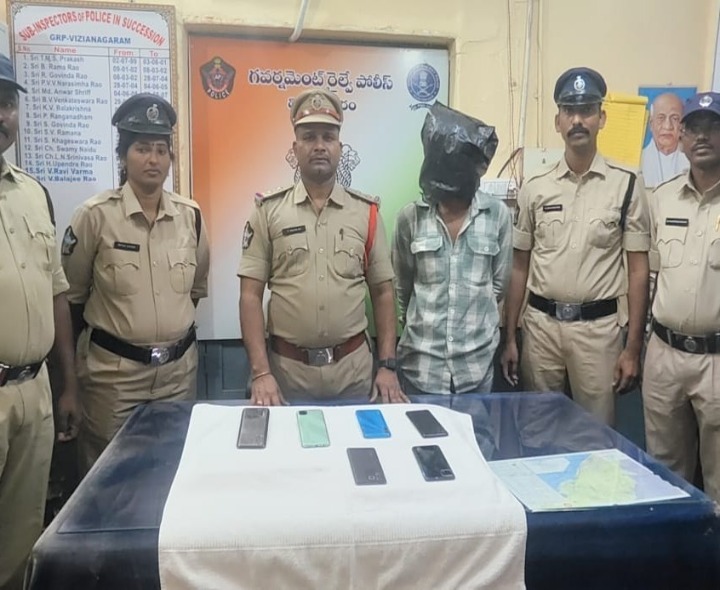 VZB: కదిలే రైళ్లలో దొంగతనాలకు పాల్పడుతున్న ఒడిస్సా రాష్ట్రం టిట్లాగర్కు చెందిన పాపుసేథ విజయనగరం జీఆర్పీ, ఎస్సై బాలాజీరావు, రైల్వే రక్షక దళం ఎస్సై రమణ నిందితుడిని పట్టుకొన్నారు. ప్రయాణికుల నుంచి దొంగతనం చేసిన సుమారు రూ. 2 లక్షల విలువైన ఆరు చరవాణులు స్వాధీనం చేసుకుని, రిమాండ్ నిమిత్తం రైల్వే కోర్టులో ప్రవేశిపెట్టినట్లు చెప్పారు.