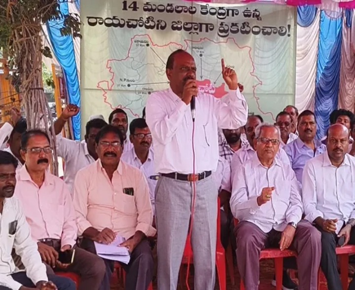 అన్నమయ్య: రాయచోటిని ప్రత్యేక జిల్లాగా ప్రకటించాలని కోరుతూ రాజకీయాలకు అతీతంగా ఐక్య ఉద్యమం చేపట్టాలని జిల్లా సాధన జాయింట్ యాక్షన్ కమిటీ అధ్యక్షుడు టి. ఈశ్వర్ పిలుపునిచ్చారు. శనివారం రాయచోటిలోని అంబేద్కర్ ఫ్లెక్సీ వద్ద జేఏసీ సమావేశం నిర్వహించారు. ప్రజా సంఘాలు, విద్యార్థి, ఉపాధ్యాయ సంఘాలు, వివిధ రాజకీయ పార్టీల నాయకులు JACలో భాగస్వాములై ప్రత్యేక జిల్లా సాధించాలన్నారు.