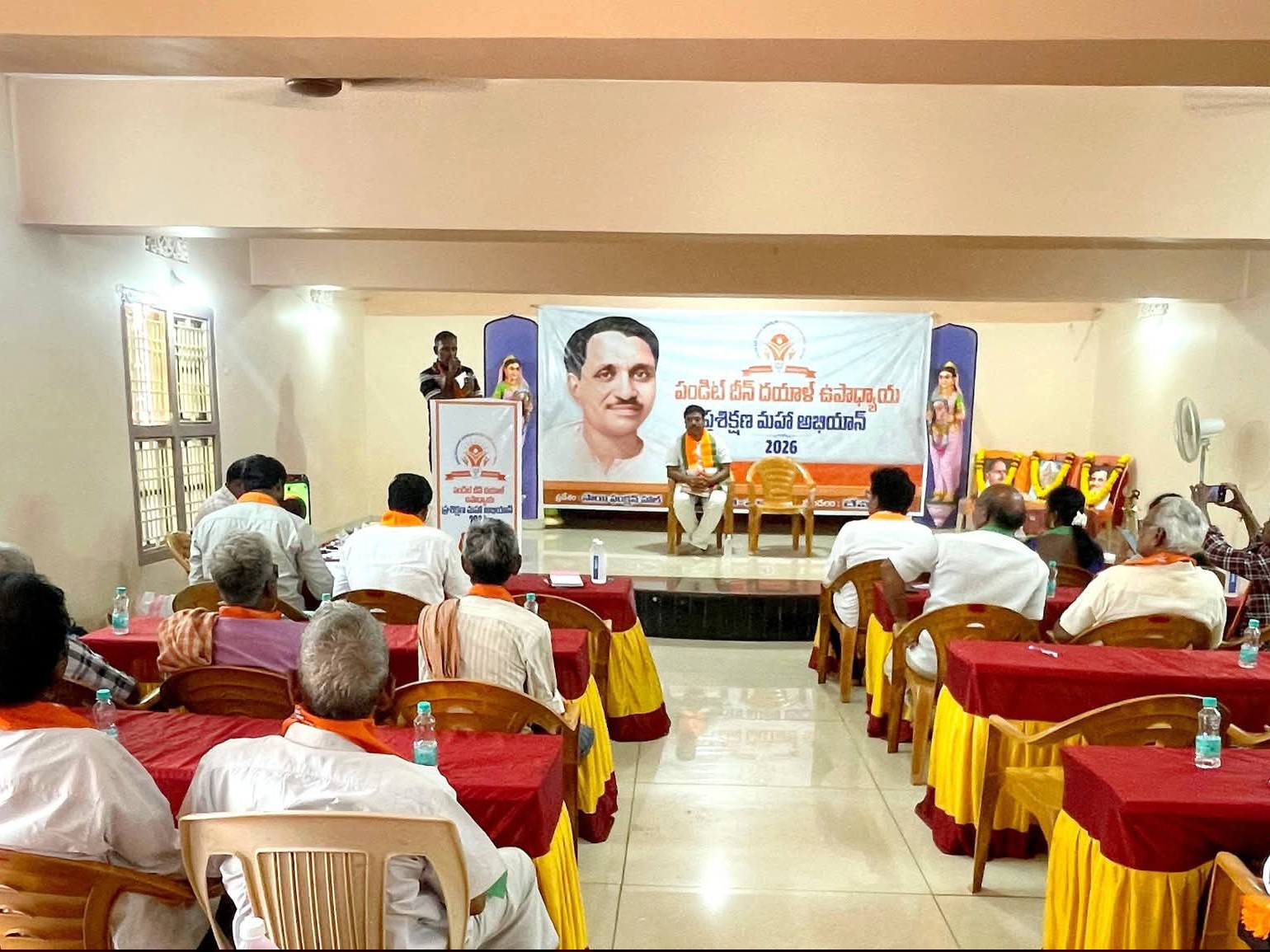 E.G: గోపాలపురం నియోజకవర్గం దేవరపల్లిలో పండిట్ దయాళ్ ఉపాధ్యాయ ప్రశిక్షణ మహా అభియాన్ -2026 కార్యక్రమం మంగళవారం నిర్వహించారు. మండల ప్రశిక్షణలో కార్యపద్దతి కాలాంశం వక్తగా బీజేపీ ఓబీసీ మోర్చా రాష్ట్ర ఉపాధ్యాక్షుడు కాలేపు సత్య సాయిరాం పాల్గొని మాట్లాడారు. పార్టీ కార్యాచరణ అంశాలు, దేశభక్తి, సాంస్కృతిక జాతీయ భావజాలాలను ప్రజల్లోకి విస్తృతంగా తీసుకెళ్ళాలన్నారు.