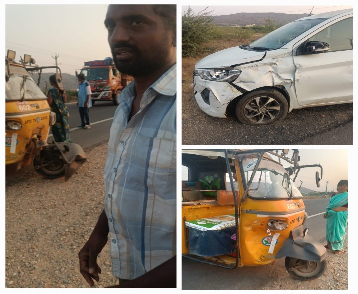 ప్రకాశం: కంభం పట్టణంలోని పాలిటెక్నిక్ కాలేజ్ సమీపంలో శుక్రవారం రోడ్డు ప్రమాదం చోటు చేసుకుంది. ముందు వెళ్తున్న ఆటో ఆగి ఒక్క సారిగా రివర్స్ చెయ్యడంతో వెనుక నుండి కార్ ఢీ కొట్టింది. ప్రమాద సమయంలో ఆటోలో నలుగురు, కారులో నలుగురు ప్రయాణికులు ఉన్నారు. ఈ ప్రమాదంలో ఎవ్వరికీ ఎటువంటి గాయాలు అవ్వలేదు. ఆటో, కారు స్వల్పంగా దెబ్బతిన్నాయి.