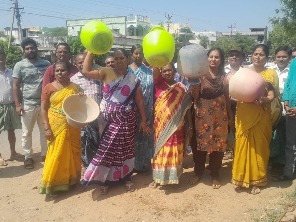 KDP: సిద్ధవటం(మం) మాధవరం-1 పంచాయతీలోని వెంకటేశ్వరపురంలో తాగునీటి కొరత తీవ్రంగా ఉండడంతో శుక్రవారం గ్రామ మహిళలు ఆందోళనకు దిగారు. పలుమార్లు అధికారులకు విన్నవించినా సమస్య ఏ మాత్రం పరిష్కారం కాలేదని వారు ఆగ్రహం వ్యక్తం చేశారు. గ్రామంలోని ప్రధాన రహదారిపై మహిళలు బిందెలతో నిరసన తెలుపుతూ.. తాగునీరు అందించాలని డిమాండ్ చేశారు.