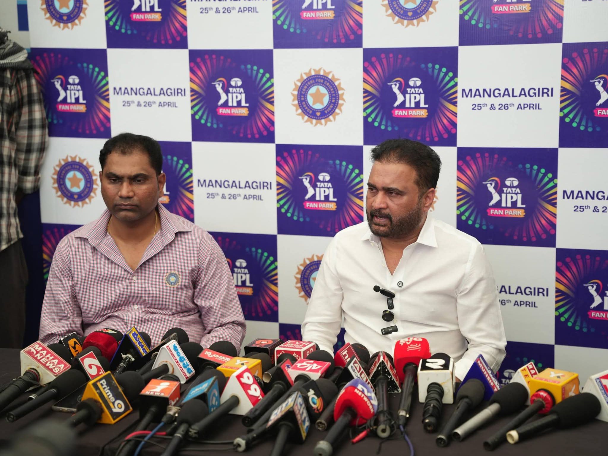 GNTR: మంగళగిరి టిడ్కో మెగా పార్క్లో ఈ నెల 25, 26 తేదీలలో భారీ ఫ్యాన్ పార్క్ నిర్వహించనున్నట్లు ఆంధ్ర క్రికెట్ అసోసియేషన్ కార్యదర్శి, ఎంపీ సాన సతీష్ తెలిపారు. టిడ్కో మెగా పార్క్ వద్ద ఏర్పాటు చేసిన మీడియా సమావేశంలో ఆయన మాట్లాడుతూ.. మంత్రి నారా లోకేష్ చొరవతో మంగళగిరిలో ఈ ప్రత్యేక క్రీడా కార్యక్రమం జరుగుతుందని వెల్లడించారు.