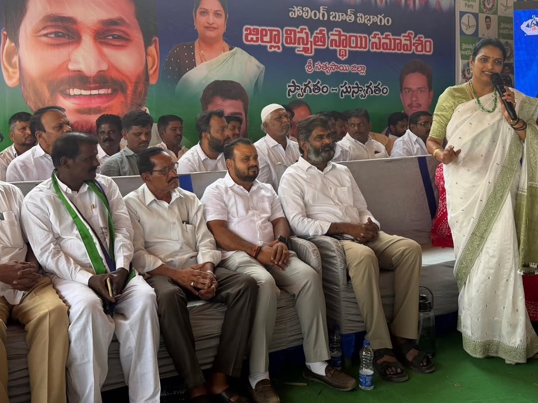 సత్యసాయి: పెనుకొండలోని వైసీపీ కార్యాలయంలో జిల్లాస్థాయి బూత్ కమిటీ సమావేశం శుక్రవారం నిర్వహించారు. జిల్లా వైసీపీ అధ్యక్షురాలు ఉషశ్రీ చరణ్ మాట్లాడుతూ.. వైసీపీ పార్టీ బలోపేతానికి బూత్ స్థాయి నిర్మాణం కీలకమని తెలిపారు. ప్రతి పోలింగ్ బూత్ వద్ద సమర్థవంతమైన బృందాలు ఏర్పాటు చేయాలని నాయకులు సూచించారు. ఈ కార్యక్రమంలో హిందూపురం వైసీపీ ఇన్ ఛార్జ్ దీపిక పాల్గొన్నారు.