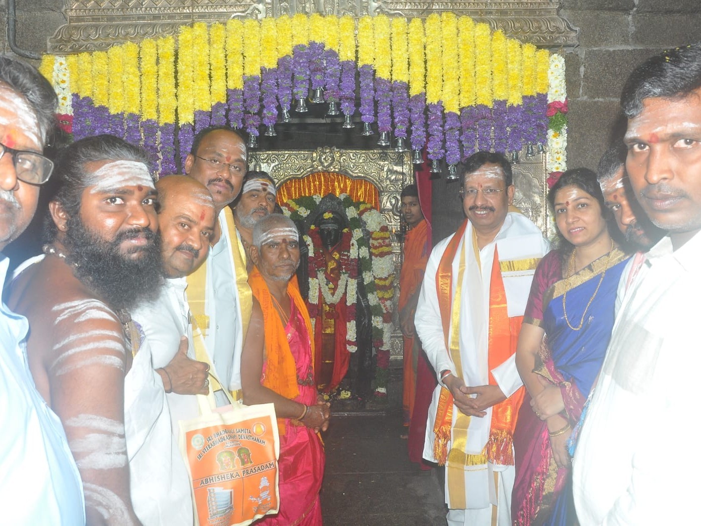 అన్నమయ్య: హైదరాబాద్ సిటీ పోలీస్ కమిషనర్, సీనియర్ ఐపీఎస్ అధికారి వీసీ సజ్జనార్ దంపతులు శుక్రవారం రాయచోటిలో వెలసిన శ్రీ భద్రకాళి సమేత వీరభద్ర స్వామిని దర్శించుకున్నారు. ఆలయ పురోహితులు వారికి స్వాగతం పలికి ప్రత్యేక దర్శన ఏర్పాట్లు చేశారు. ఈ కార్యక్రమంలో టీడీపీ నాయకులు లక్ష్మీ ప్రసాద్ రెడ్డి, ఆలయ ఛైర్మన్ మనోజ్ కుమార్, ఈఓ రమణారెడ్డి, పాలక మండలి సభ్యులు పాల్గొన్నారు.