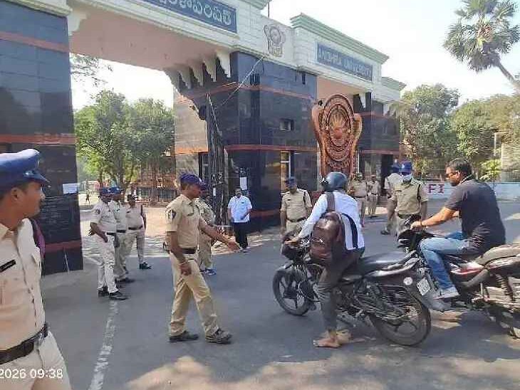 VSP: గత కొన్ని రోజులగా ఆంధ్ర విశ్వవిద్యాలయంలో చోటుచేసుకుంటున్న వరుస సంఘటనల నేపథ్యంలో అధికారులు భద్రతా చర్యలను పటిష్టం చేశారు. గుర్తింపు కార్డు కలిగిన వారిని మాత్రమే విశ్వవిద్యాలయంలోకి అనుమతిస్తున్నారు. విద్యార్థి సంఘాలు ఏబీవీపీ, ఎస్ఎఫ్ఎస్ఐ మధ్య వివాదం, అదేవిధంగా గెస్ట్ ఫ్యాకల్టీ చేసిన నిరాహార దీక్షలు నేపథ్యంలో భద్రతను పటిష్టం చేసినట్లు అధికారులు తెలిపారు.