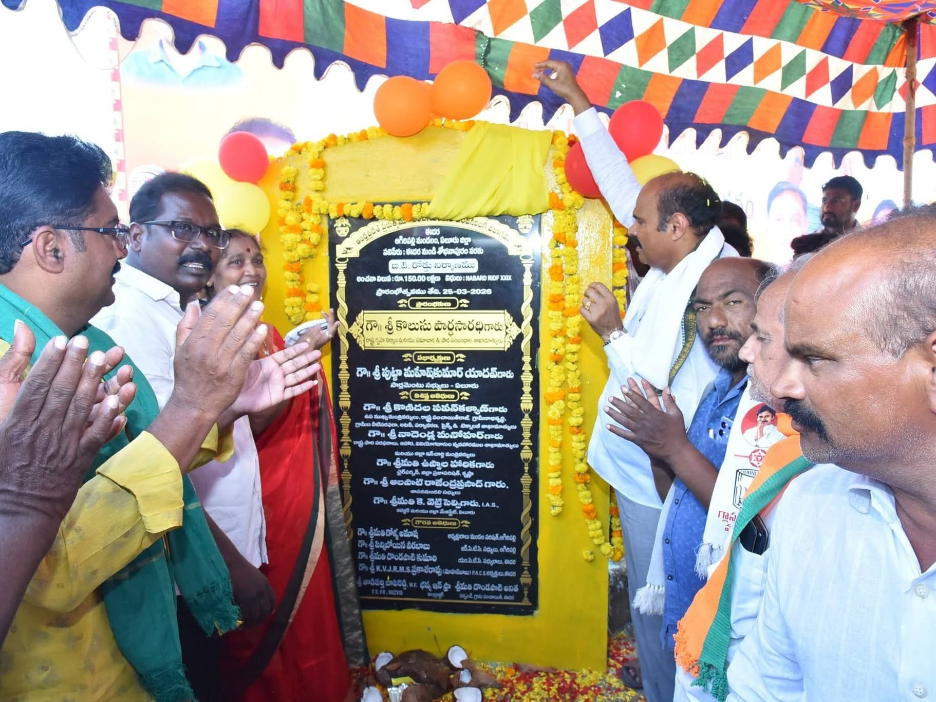 ELR: ఆగిరిపల్లి మండలం ఈదర గ్రామంలో బుధవారం రాష్ట్ర మంత్రి కొలుసు పార్థసారథి పర్యటించారు. ఈ సందర్భంగా గ్రామంలో రూ.150 లక్షల వ్యయంతో నూతనంగా నిర్మించిన సీసీ రోడ్డు ప్రారంభోత్సవ కార్యక్రమంలో ఆయన పాల్గొని రోడ్డును ప్రారంభించారు. ఈ సందర్భంగా గ్రామ అభివృద్ధికి ప్రభుత్వం కట్టుబడి ఉందని, ప్రజలకు మెరుగైన మౌలిక వసతులు అందించడమే లక్ష్యమని తెలిపారు.