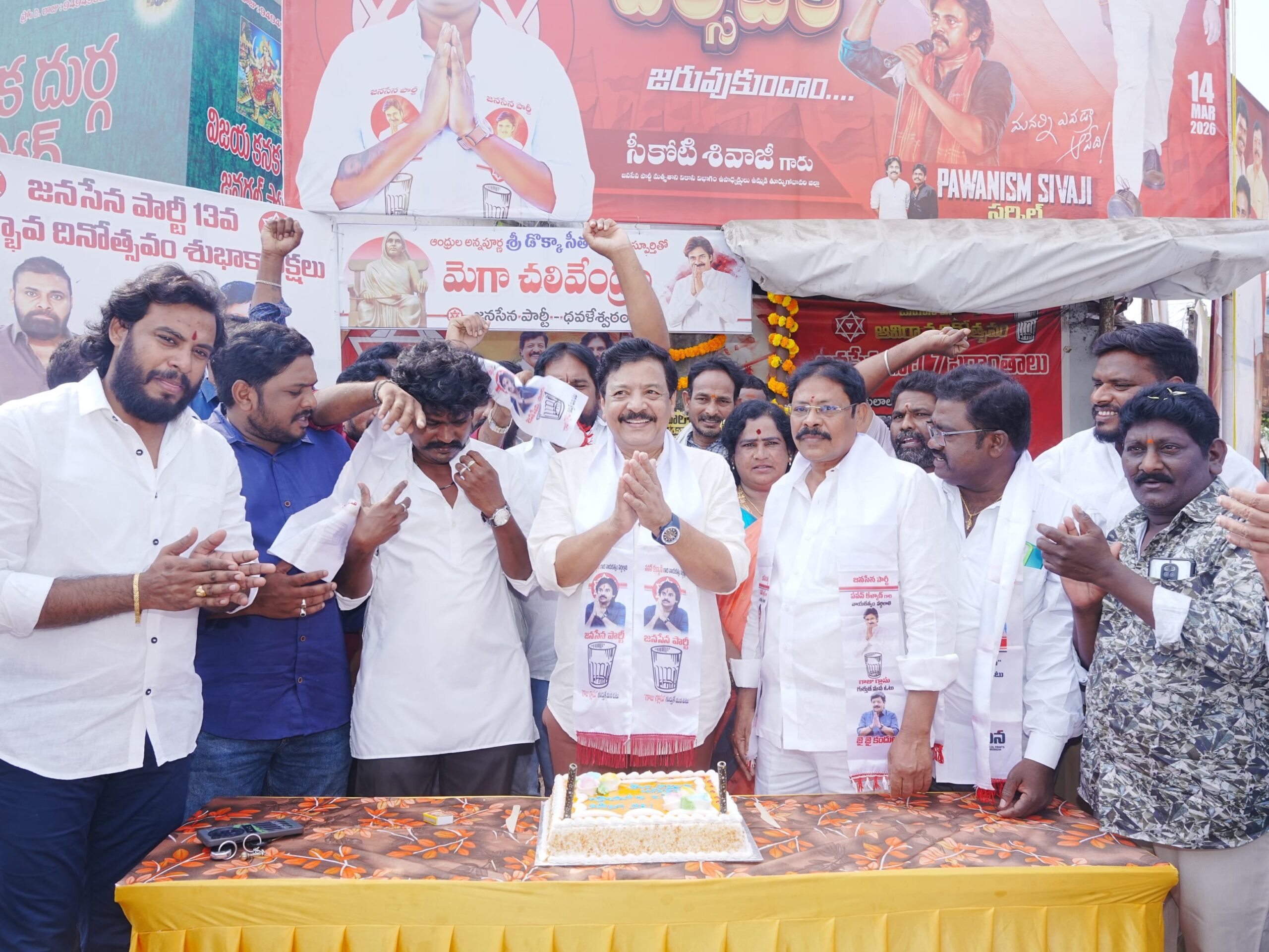 E.G: రాజమండ్రి రూరల్ మండలం ధవళేశ్వరం గ్రామంలో శనివారం జనసేన పార్టీ 13వ ఆవిర్భావ దినోత్సవం వేడుకలు ఘనంగా నిర్వహించారు. ఈ కార్యక్రమానికి ముఖ్యఅతిథిగా మంత్రి కందుల దుర్గేష్ పాల్గొని పార్టీ జెండాను ఆవిష్కరించారు. ప్రజాసేవే లక్ష్యంగా ముందుకు సాగుతున్న జనసేన పార్టీ సిద్ధాంతాలను స్మరించుకుంటూ, అందరూ ఐక్యంగా పనిచేయాలని పిలుపునిచ్చారు.