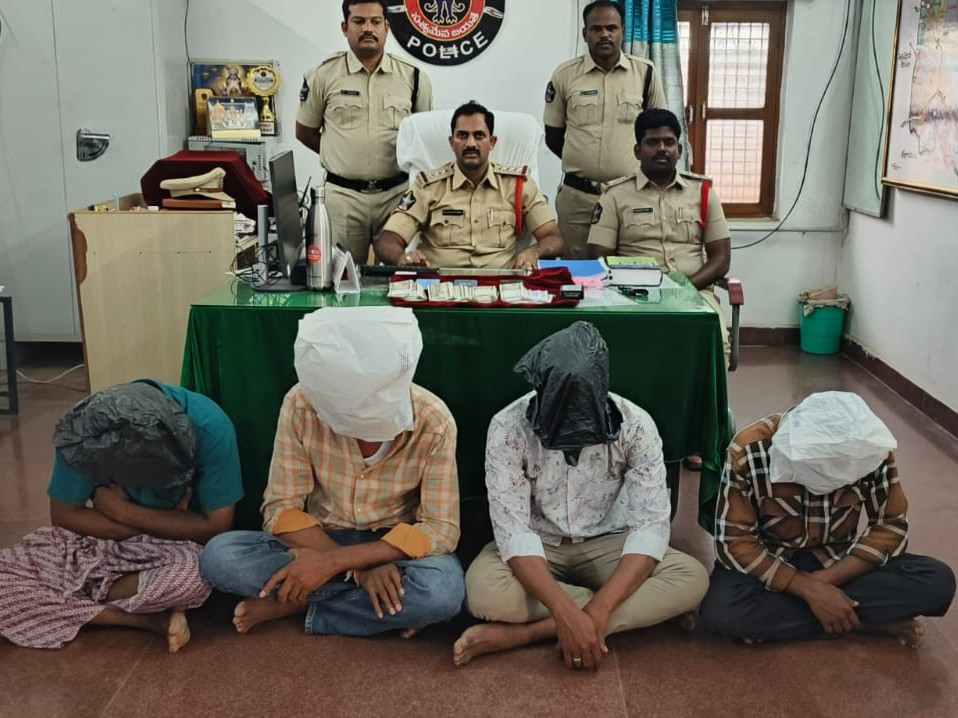 ATP: తాడిపత్రి పట్టణంలోని పెన్నా నది పరివాహక ప్రాంతంలో తోటలో పేకాట ఆడుతున్న నలుగురు వ్యక్తులను పోలీసులు గురువారం అరెస్ట్ చేశారు. జిల్లా ఎస్పీ పి.జగదీష్ ఆదేశాల మేరకు సీఐ శివగంగాధర్ రెడ్డి నేతృత్వంలో ఈ దాడులు నిర్వహించారు. ఈ సందర్భంగా నిందితుల నుంచి రూ. 82,500 నగదు, ఒక మోటార్ సైకిల్, మూడు సెల్ ఫోన్లను స్వాధీనం చేసుకున్నారు.