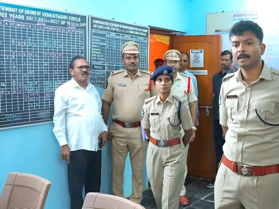 TPT: జిల్లా ఎస్పీ హర్షవర్ధన్ రాజు వెంకటగిరి పోలీస్ స్టేషనన్ను బుధవారం సాయంత్రం ఆకస్మికంగా తనిఖీ చేశారు. సీసీ కెమెరాలు, స్టోరేజ్ ఫుటేజ్, క్రైమ్ చార్ట్, పాత కేసుల పురోగతి, రౌడీ షీటర్స్ పరిస్థితి పరిశీలించారు. కోర్టు అనుమతితో వాహనాలను డిస్పోజ్ చేయాలని, డ్రోన్ పర్యవేక్షణతో అసాంఘిక కార్యకలాపాలను నిరంతరం పర్యవేక్షించాలని ఆదేశించారు.