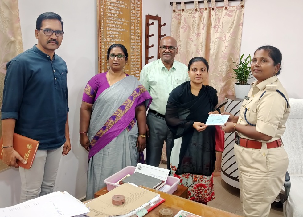 VZM: రోడ్డు ప్రమాదంలో మృతిచెందిన గజపతినగరం కానిస్టేబుల్ టీ.తిరుపతిరావు కుటుంబానికి చేయూత చెక్కును రూ. 1,47,800ను ఆయన భార్య దమయంతికి అదనపు ఎస్పీ సౌమ్యలత సోమవారం అందజేశారు. ఈ సందర్బంగా ఆమె మాట్లాడుతూ.. పోలీసు సిబ్బంది ప్రోగుచేసి మరణించిన కుటుంబానికి చేయూత రూపంలో అందించడం గొప్ప త్యాగం అన్నారు. ఈ కార్యక్రమంలో ఏవో పాల్గొన్నారు.