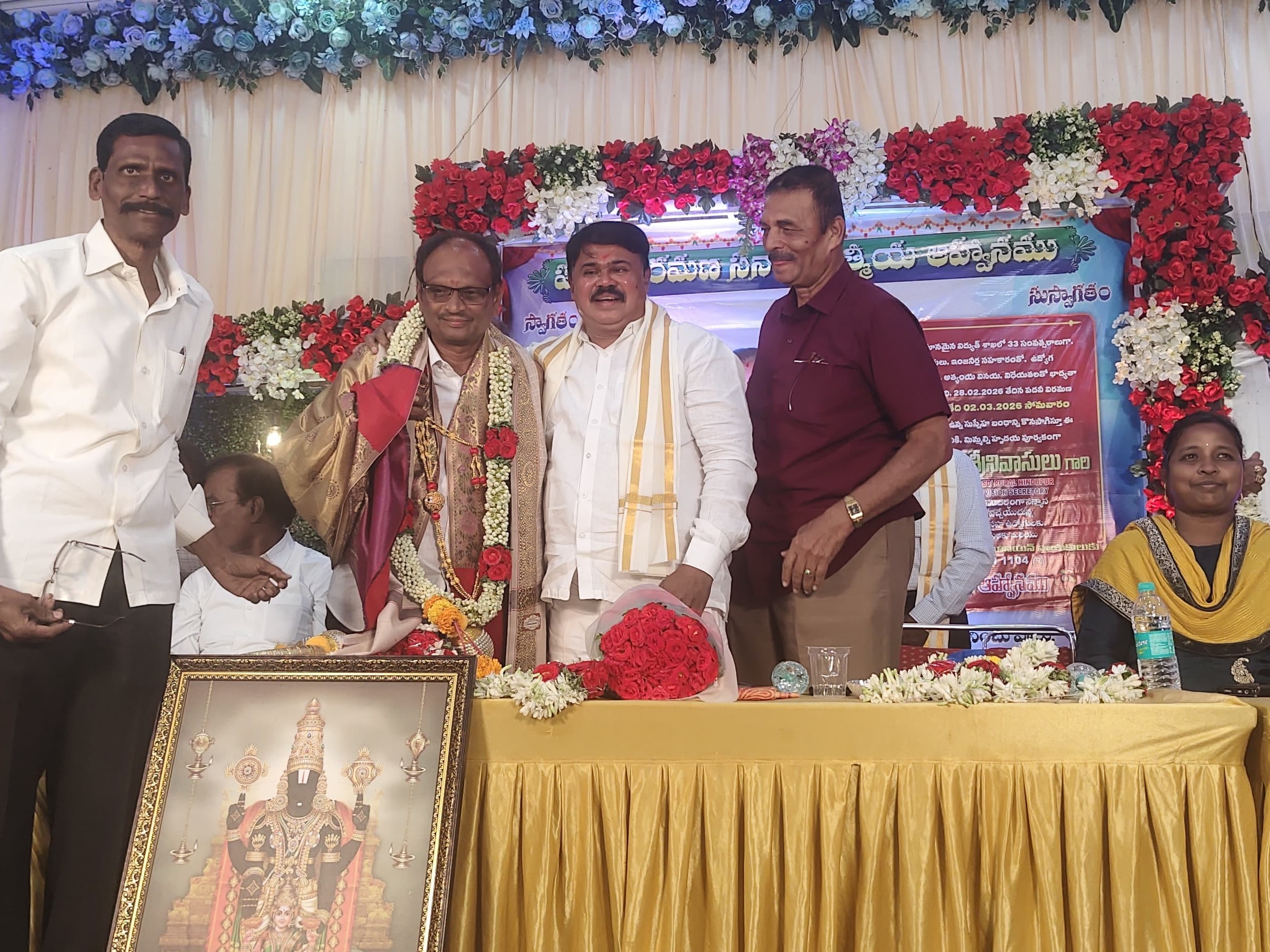 సత్యసాయి: హిందూపురం విద్యుత్ శాఖలో సీనియర్ అసిస్టెంట్గా 33ఏళ్లు సేవలందించి పదవీ విరమణ పొందుతున్న శ్రీనివాసులు సేవలు అభినందనీయమని మున్సిపల్ ఛైర్మన్ డీఈ రమేశ్ కుమార్ పేర్కొన్నారు. పదవీ విరమణ సందర్భంగా నిర్వహించిన ఆత్మీయ సభలో ఆయన పాల్గొన్నారు. శ్రీనివాసులు వృత్తిని దైవంగా భావించి నీతి, నిజాయితీగా పని చేశారని కొనియాడారు. అనంతరం ఆయనను సన్మానించారు.