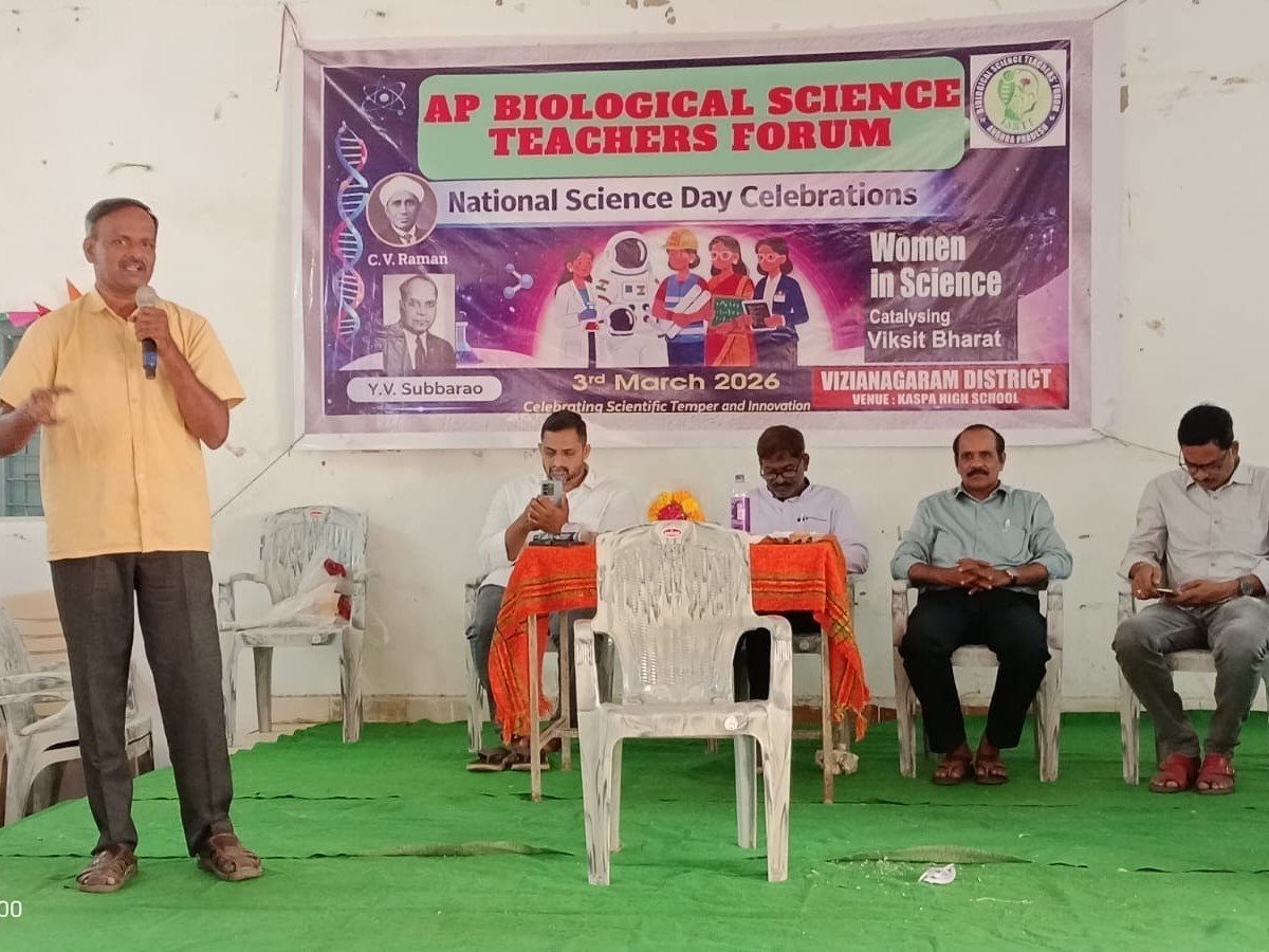 VZM: విద్యార్థులకు శాస్త్రీయ పద్ధతిలో బోధించాల్సిన అవసరం ఉందని ఆంధ్రప్రదేశ్ బయాలజీ టీచర్స్ ఫోరం రిసోర్స్ పర్సన్ వీరప్పయ్య అన్నారు. జాతీయ సైన్స్ వారోత్సవాల్లో భాగంగా కస్పా పాఠశాలలో సైన్స్ సదస్సును నిర్వహించారు. ఉపాధ్యాయులు మారుతున్న సాంకేతిక పరిజ్ఞానానికి అనుగుణంగా విద్యార్థులకు శాస్త్రీయ పద్ధతులలో విద్యను బోధించాలని సూచించారు.