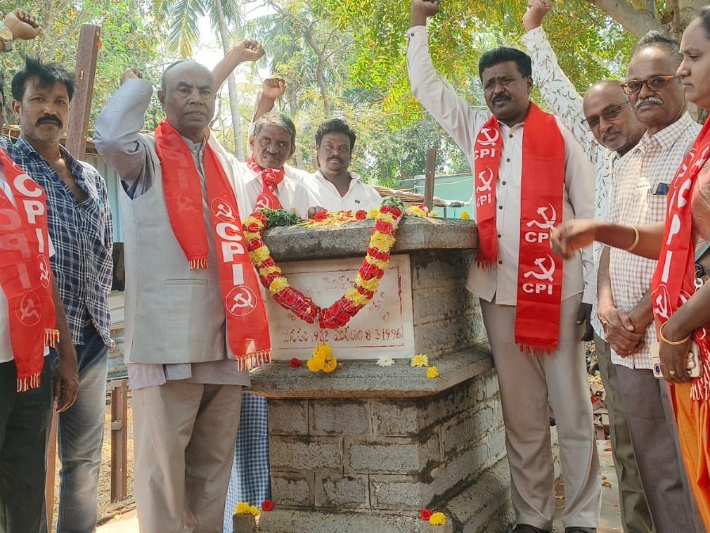 కడప సమీపంలోని ఆలంఖాన్పల్లె-రాయలపంతులపల్లె మధ్య ఉన్న జె.వెంకట్రామిరెడ్డి సమాధి వద్ద ఆదివారం సీపీఐ నాయకులు పూలమాలలు వేసి నివాళులర్పించారు. రైతు సంక్షేమం, రాయలసీమకు కృష్ణా జలాలు తేవడం, గండికోట ప్రాజెక్టు సాధన కోసం జెవీ అవిశ్రాంతంగా పోరాడిన గొప్ప కమ్యూనిస్టు నాయకుడని సీపీఐ సీనియర్ నాయకుడు పులి కృష్ణమూర్తి పేర్కొన్నారు. ఈ కార్యక్రమంలో రైతులు, సీపీఐ నేతలు పాల్గొన్నారు.