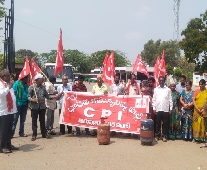 NTR: తిరువూరు ఆర్టీసీ బస్టాండ్ ఔట్ గేటు వద్ద సీపీఐ ఆధ్వర్యంలో ఆదివారం నిరసన ధర్నా నిర్వహించారు. పెరిగిన వంట గ్యాస్ ధరలతో సామాన్యులు, మధ్యతరగతి కుటుంబాలు తీవ్రంగా నష్టపోతున్నారని సీపీఐ నాయకులు ఆందోళన వ్యక్తం చేశారు. గ్యాస్ ధరలను నియంత్రించి సామాన్యులకు అందుబాటులో ఉండేలా చర్యలు తీసుకోవాలని డిమాండ్ చేశారు.