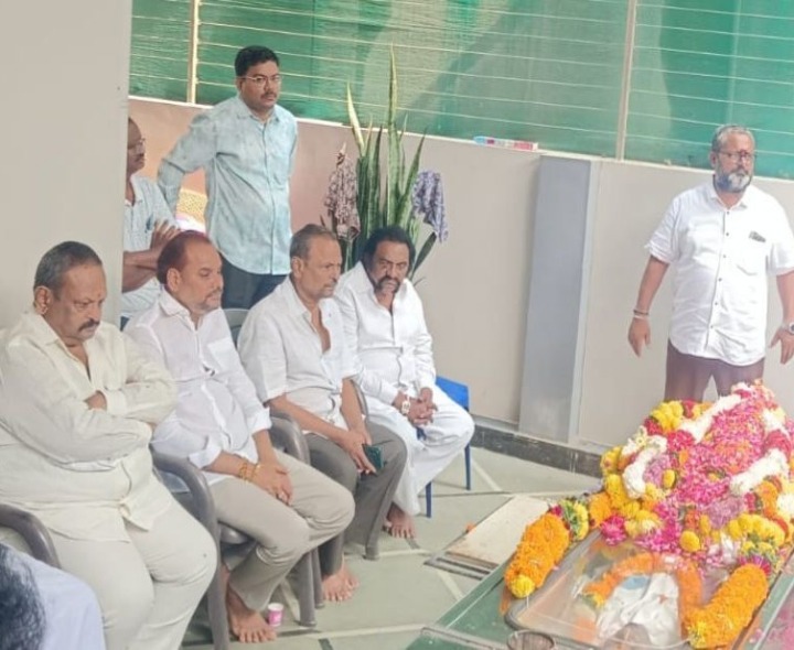 VZM: మాజీ డిప్యూటీ స్పీకర్ కోలగట్ల వీరభద్ర స్వామి సోదరులు, ప్రముఖ న్యాయవాది కోలగట్ల తమన్న శెట్టి నిన్న స్వర్గస్తులైన విషయం తెలిసిందే. ఈ మేరకు జడ్పీ ఛైర్మన్ మజ్జి శ్రీనివాసరావు గురువారం వారి నివాసానికి చేరుకుని తమన్న శెట్టి పార్థివ దేహానికి పూలమాల వేసి ఘనంగా నివాళులర్పించారు. ఆయన మృతి తీరని లోటని, కుటుంబ సభ్యులకు తన ప్రగాఢ సానుభూతిని తెలియజేశారు.
