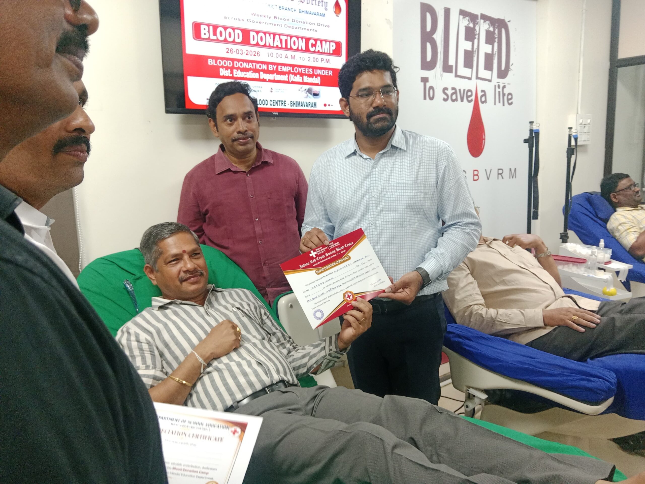 W.G.భీమవరం పట్టణంలోని రాయలం జిల్లా రెడ్ క్రాస్ కార్యాలయంలో గురువారం పాఠశాల విద్యాశాఖ ఆధ్వర్యంలో నిర్వహించిన రక్తదాన శిబిరాన్ని జేసీ రాహుల్ కుమార్ రెడ్డి ప్రారంభించారు. ఈ సందర్భంగా ఆయన మాట్లాడుతూ.. రెడ్ క్రాస్ సంస్థ నిర్వహిస్తున్న రక్తదాన శిబిరాలు అత్యవసర సమయాల్లో రోగులకు ప్రాణ రక్షణగా నిలుస్తున్నాయని అన్నారు. అనంతరం రక్తదాతలను అభినందించారు.