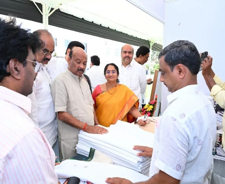 GNTR: ఆంధ్రప్రదేశ్ అసెంబ్లీ ఆవరణలో ఏర్పాటు చేసిన చేనేత స్టాళ్లను స్పీకర్ చింతకాయల అయ్యన్నపాత్రుడు, పలువురు ఎమ్మెల్యేలతో కలిసి మంత్రి సవిత సందర్శించారు. స్టాళ్లలో ప్రదర్శనకు ఉంచిన వివిధ రకాల చేనేత వస్త్రాలను పరిశీలించి, అమ్మకాలు ఎలా జరుగుతున్నాయన్న విషయాన్ని అధికారులను అడిగి తెలుసుకున్నారు.