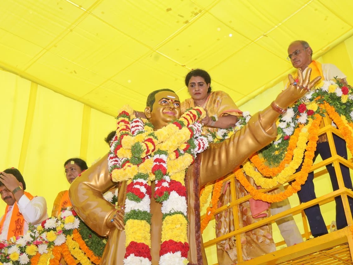 కృష్ణా: పమిడిముక్కల మండలం గోపవానిపాలెంలో మాజీ సీఎం ఎన్టీఆర్ విగ్రహావిష్కరణ కార్యక్రమం శనివారం ఘనంగా జరిగింది. నందమూరి హరికృష్ణ కుమార్తె నందమూరి సుహాసిని ఎన్టీఆర్ విగ్రహానికి పూలమాలలు వేసి నివాళులర్పించారు. ఈ సందర్భంగా ఎన్టీఆర్ ప్రజలకు చేసిన సేవలు, తెలుగు ప్రజల పట్ల ఆయనకున్న అపారమైన ప్రేమను ఆమె స్మరించుకున్నారు. ఈ కార్యక్రమంలో కూటమి నేతలు పాల్గొన్నారు.