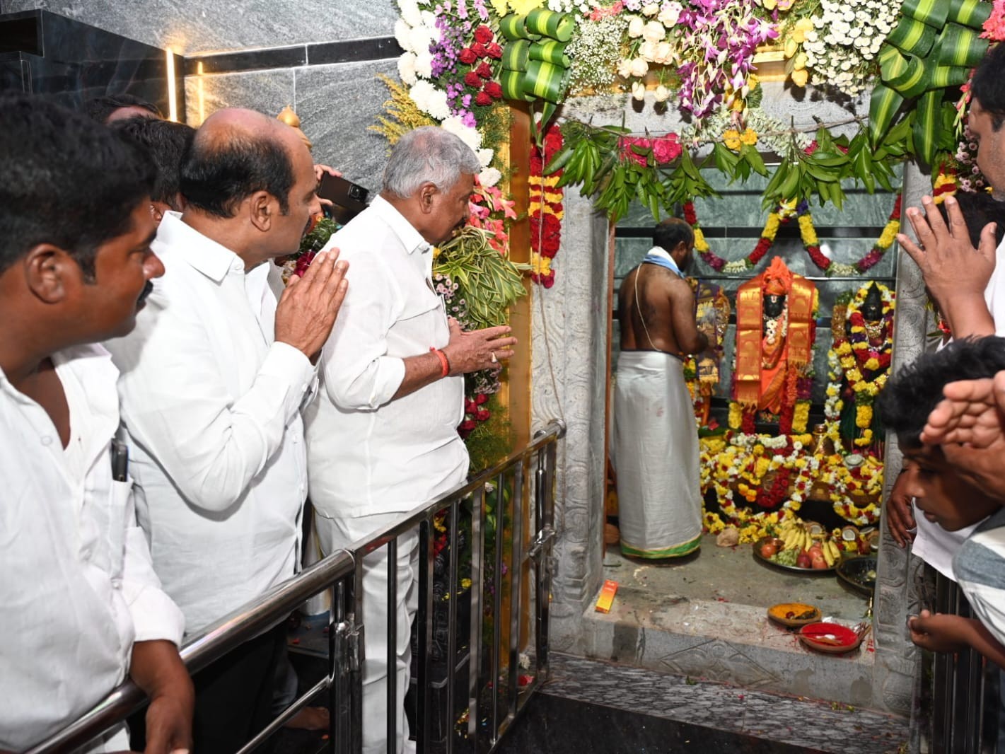 CTR: పుంగనూరు మండలంలోని ప్రసన్నయ్యగారిపల్లెలో నూతనంగా నిర్మించిన శ్రీ సీతాసమేత కోదండరామస్వామి ఆలయ ప్రారంభపూజా కార్యక్రమంలో ఎమ్మెల్యే పెద్దిరెడ్డి రామచంద్రారెడ్డి బుధవారం సాయంత్రం పాల్గొన్నారు. ఈ సందర్భంగా ఆలయ అర్చకులు పెద్దిరెడ్డికి పూర్ణకుంభ స్వాగతం పలికారు. తర్వాత ఆలయంలో స్వామివారిని దర్శించి ప్రత్యేక పూజలు నిర్వహించారు.