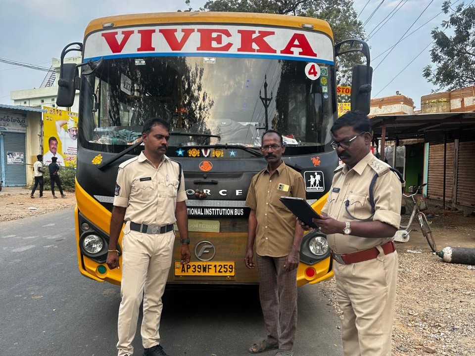 ప్రకాశం: ప్రభుత్వ నిబంధనలు ఉల్లంఘిస్తే కఠిన చర్యలు తప్పవని దర్శి మోటార్ వాహనాల తనిఖీ అధికారి రవికుమార్ హెచ్చరించారు. గురువారం పామూరులో నిర్వహించిన తనిఖీల్లో టాక్స్ చెల్లించని ఒక స్కూల్ బస్సు, రెండు టిప్పర్లకు మొత్తం రూ.1.55 లక్షల జరిమానా విధించినట్లు తెలిపారు. రవాణా వాహనాలు విధిగా ట్యాక్స్ చెల్లించి, రోడ్డు భద్రతా నిబంధనలు తప్పక పాటించాలని సూచించారు.