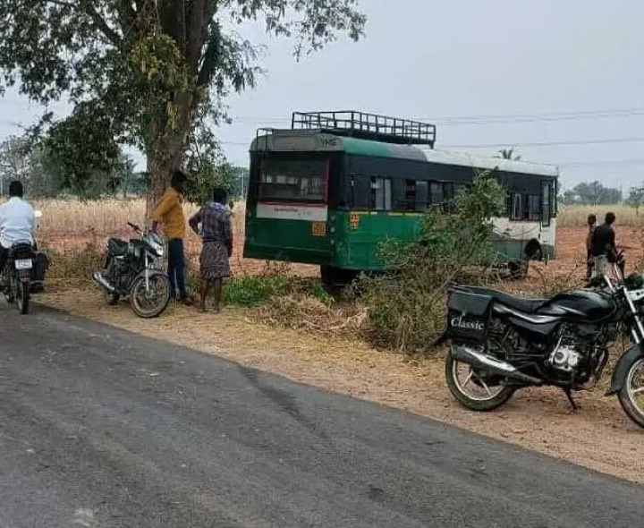KRNL: ఐజ నుంచి ఎమ్మిగనూరు వస్తున్న ఆర్టీసీ బస్సుకు భారీ ప్రమాదం తృటిలో తప్పింది. నందవరం సబ్స్టేషన్ సమీపంలో స్టీరింగ్ వీల్ తెగిపోవడంతో బస్సు అదుపు తప్పి పొలంలోకి దూసుకెళ్లింది. ఆ సమయంలో బస్సులో 18 మంది ప్రయాణికులు ఉన్నారు. డ్రైవర్ చాకచక్యంగా వ్యవహరించి బస్సును నిలిపివేయడంతో అందరూ సురక్షితంగా బయటపడ్డారు. ప్రయాణికులు ఊపిరి పీల్చుకోగా డ్రైవర్ను అభినందించారు