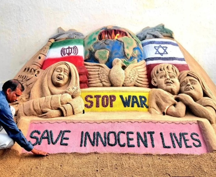 EG: ప్రపంచానికి ఒక బలమైన సందేశాన్ని అందించడానికి రంగంపేటకు చెందిన ప్రముఖ సైకత శిల్పి శ్రీనివాస్ ఇసుక శిల్పాన్ని ఇవాళ రూపొందించారు. యుద్ధం అమాయక ప్రజలకు, పిల్లలకు కన్నీళ్లను, నష్టాన్ని మాత్రమే మిగులుస్తుందని పేర్కొన్నారు. ఈ కళాకృతి ద్వారా నాయకులు ప్రపంచ సమాజాన్ని సంఘర్షణకు బదులుగా శాంతిని ఎంచుకోవలన్నారు.