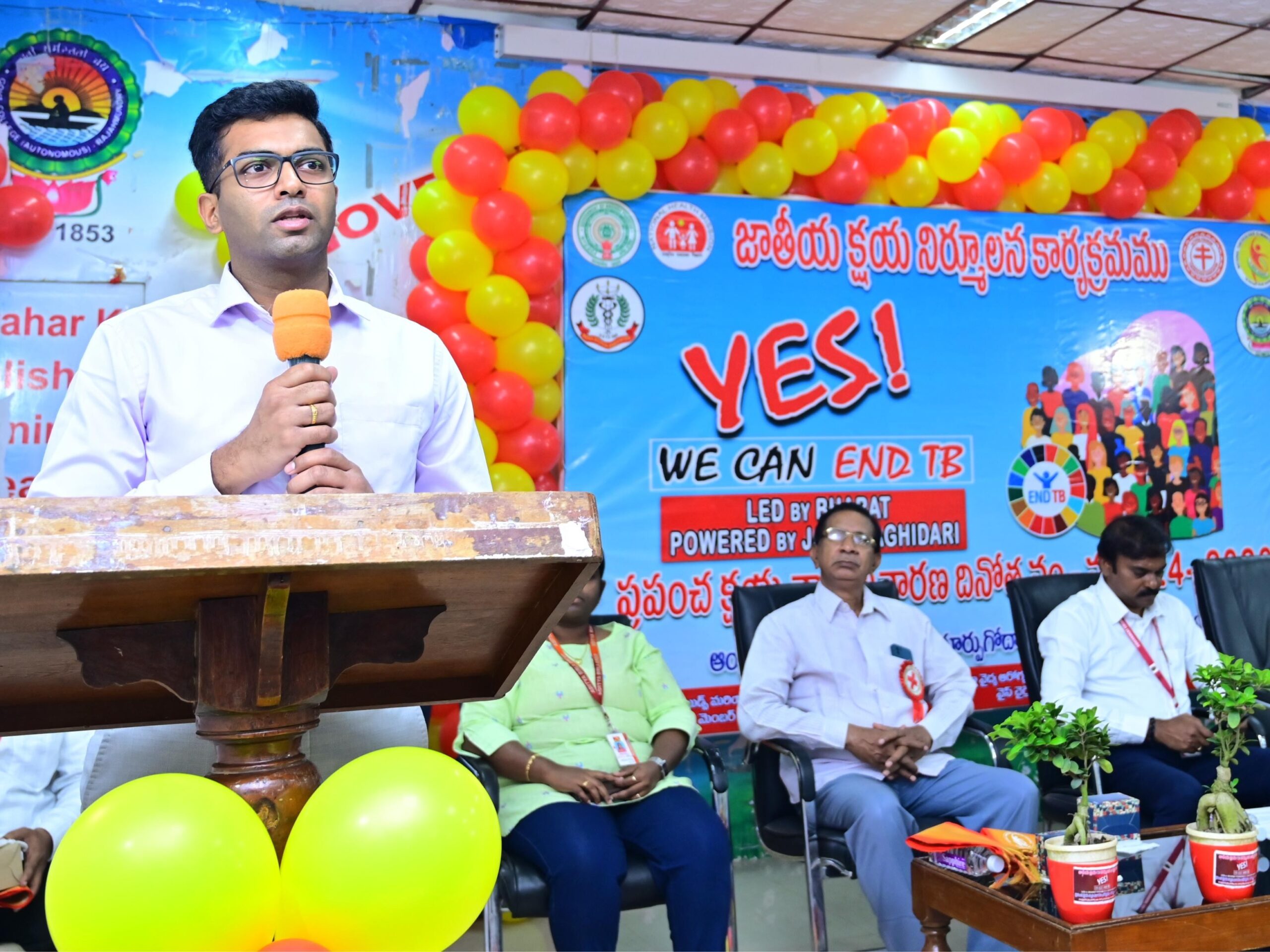 E.G: ప్రపంచ క్షయవ్యాధి దినోత్సవం సందర్భంగా రాజమండ్రిలోని వై.జంక్షన్ నుంచి ఆర్ట్స్ కళాశాల వరకు మంగళవారం అవగాహన ర్యాలీ నిర్వహించారు. అనంతరం ఆర్ట్స్ కళాశాలలో సమావేశం నిర్వహించారు. ఈ కార్యక్రమానికి జేసీ వై.మేఘా స్వరూప్ హాజరై మాట్లాడారు. ప్రపంచ క్షయవ్యాధి దినోత్సవం సందర్భంగా క్షయవ్యాధి గురించి ప్రజల్లో అవగాహన పెంపొందించడం ముఖ్య ఉద్దేశం అన్నారు.