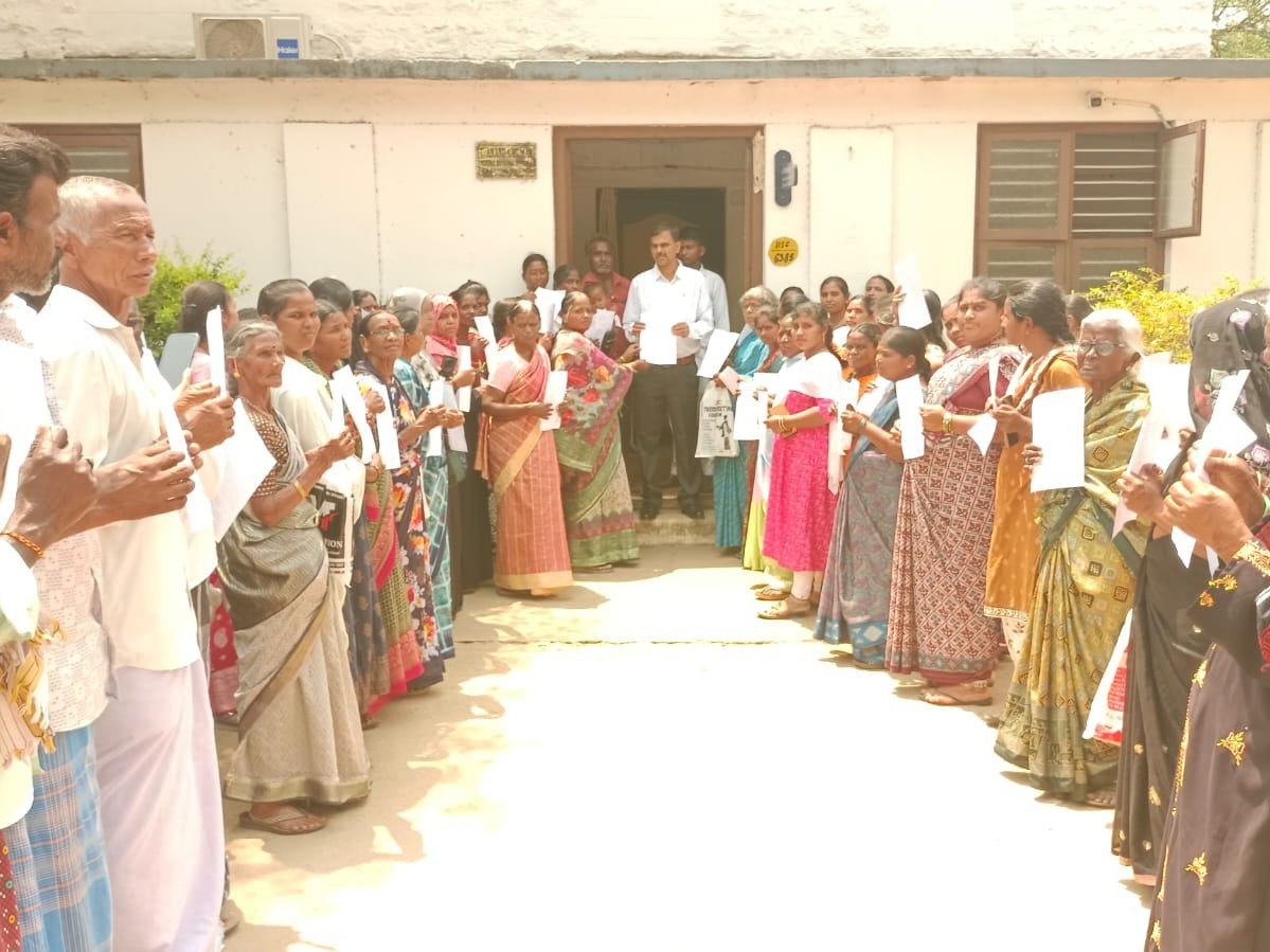 సత్యసాయి: గోరంట్ల మండలం పాలసముద్రం క్రాస్ సీపీఎం కాలనీలో తాగునీరు, కరెంట్ సౌకర్యాలు కల్పించాలని కాలనీవాసులు పెనుకొండ ఆర్డీవో ఆనంద్ కుమార్ను కలిసి 110 అర్జీలు సమర్పించారు. సమస్యను పరిశీలించిన ఆర్డీవో సంబంధిత అధికారులకు చర్యలు తీసుకోవాలని ఆదేశించారు. అప్పటివరకు రోజుకు రెండు ట్యాంకర్ల ద్వారా తాగునీరు సరఫరా చేస్తామని అధికారులు తెలిపారు.