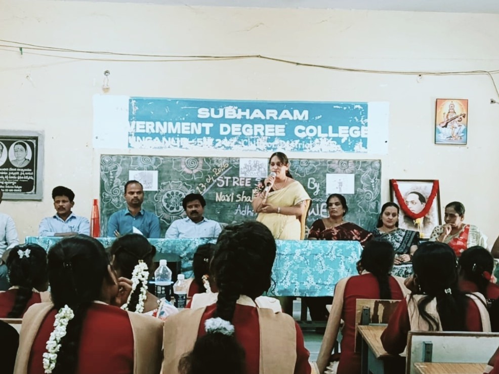CTR: పుంగనూరు ప్రభుత్వ డిగ్రీ కళాశాలలో సోమవారం శ్రీ శక్తి కార్యక్రమాన్ని సోమవారం ఘనంగా నిర్వహించారు. ఉమెన్ ఎంపవర్మెంట్ సెల్ కోఆర్డినేటర్ షాహిదా భాను ఆధ్వర్యంలో కార్యక్రమం జరిగింది. వైస్ ప్రిన్సిపల్ రాజశేఖర్ మహిళలకు 33.3 శాతం రిజర్వేషన్లు, సమాన హక్కుల గురించి విద్యార్థులకు వివరించారు.