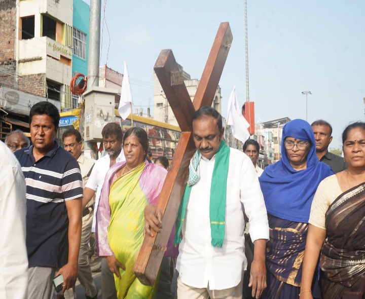 PLD: రావిపాడు గ్రామం నుంచి కనపర్తి బాలయేసు పుణ్యక్షేత్రం వరకు గ్రామస్తులు భక్తి శ్రద్ధలతో నిర్వహించిన పరిశుద్ధ సిలువ పాదయాత్రలో నరసరావుపేట ఎమ్మెల్యే చదలవాడ అరవింద బాబు పాల్గొన్నారు. ఈ సందర్భంగా సిలువను మోసే భాగ్యం కలగడం తనకు గొప్ప ఆధ్యాత్మిక అనుభూతిని కలిగించిందని తెలిపారు. భక్తుల విశ్వాసం, ఐక్యత సమాజానికి ప్రేరణగా నిలుస్తుందని పేర్కొన్నారు.
