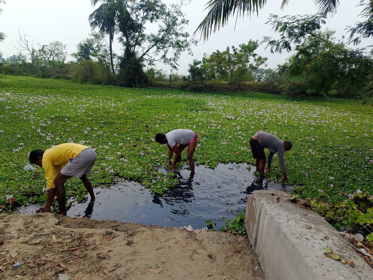 కృష్ణా: పెడన మండలం నందిగామ పంచాయతీలో ఒడ్డు చెరువులో గుర్రపు డెక్క తొలగించే పనులు మంగళవారం ప్రారంభమయ్యాయి. గ్రామ పంచాయతీ ఉప సర్పంచ్ కాగిత లక్ష్మీ నాగేశ్వరరావు, స్థానిక ప్రజల అభ్యర్థన మేరకు స్వచ్ఛందంగా కూలీలతో గుర్రపు డెక్క తొలగింపు పనులను చేపట్టారు. గుర్రపు డెక్క తొలగించడంతో నీరు ఒకచోట నిలిచిపోకుండా సాఫీగా ప్రవహిస్తుందని నాగేశ్వరరావు తెలిపారు.