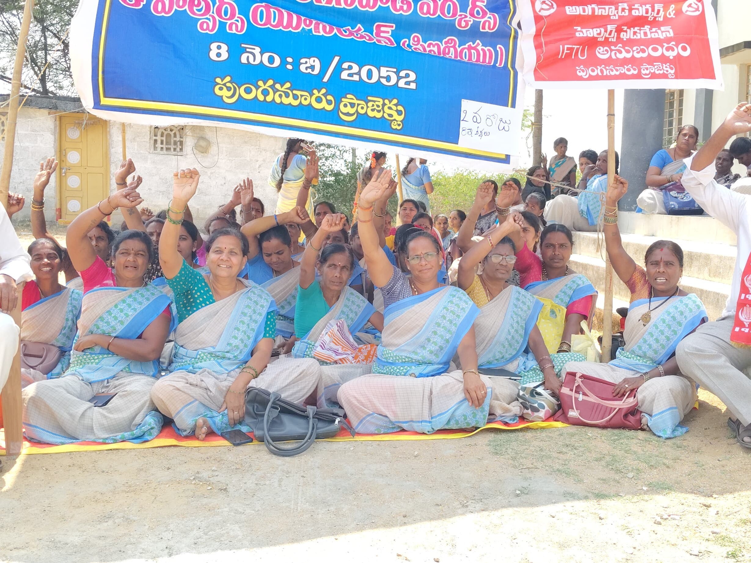 KRNL: అంగన్వాడీ వర్కర్స్ అండ్ హెల్పర్స్ అసోసియేషన్ ఆధ్వర్యంలో కొనసాగుతున్న నిరాహార దీక్షలు వెల్దుర్తిలో నేటీతో 2వ రోజుకు చేరుకున్నాయి. తమ న్యాయమైన డిమాండ్లు పరిష్కరించాలంటూ అంగన్వాడీ కార్మికులు దీక్షలను కొనసాగిస్తున్నారు. 2వ రోజు దీక్షలను చిన్న వ్యాపారస్తుల కర్నూలు కమిటీ సభ్యుడు రామాంజనేయులు ప్రారంభించారు. కార్మికుల సమస్యలను పరిష్కరించాలన్నారు.