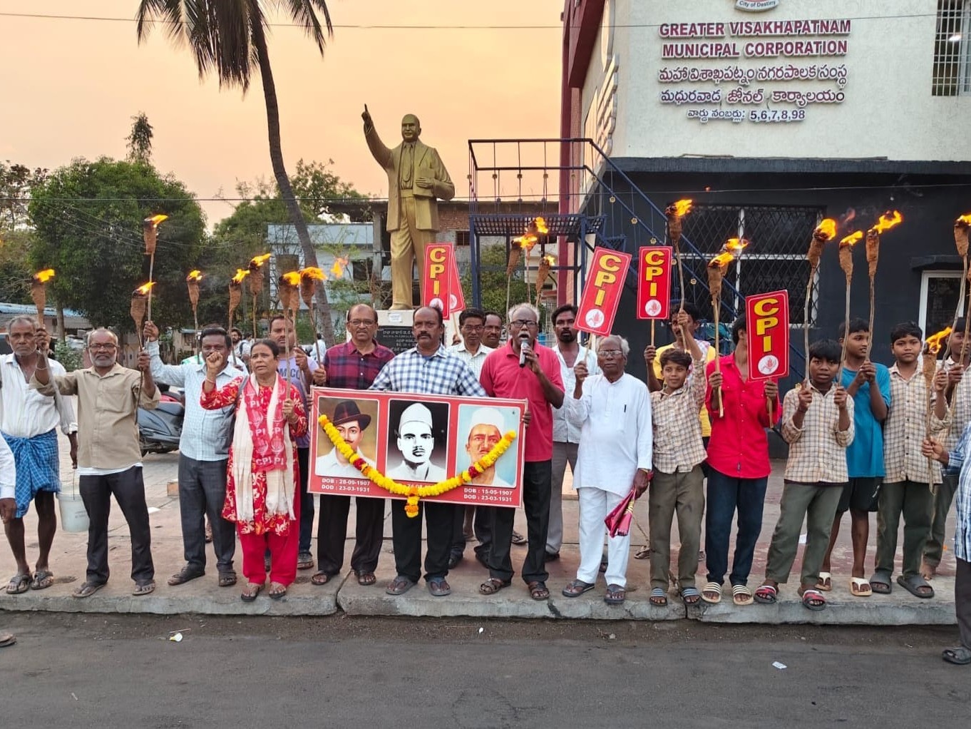 VSP: ప్రముఖ స్వాతంత్ర సమరయోధుడు భగత్ సింగ్ 95వ వర్ధంతిని పురస్కరించుకుని మధురవాడలో సీపీఐ ఆధ్వర్యంలో కాగడాల ప్రదర్శన నిర్వహించారు. ఈ సందర్భంగా సీపీఐ నేత పైడిరాజు మాట్లాడుతూ.. భగత్ సింగ్ స్ఫూర్తితో సామ్రాజ్యవాదానికి వ్యతిరేకంగా పోరాడాలని పిలుపునిచ్చారు. అమెరికా, ఇజ్రాయెల్ దేశాల యుద్ధ కాంక్షను ఖండించారు.