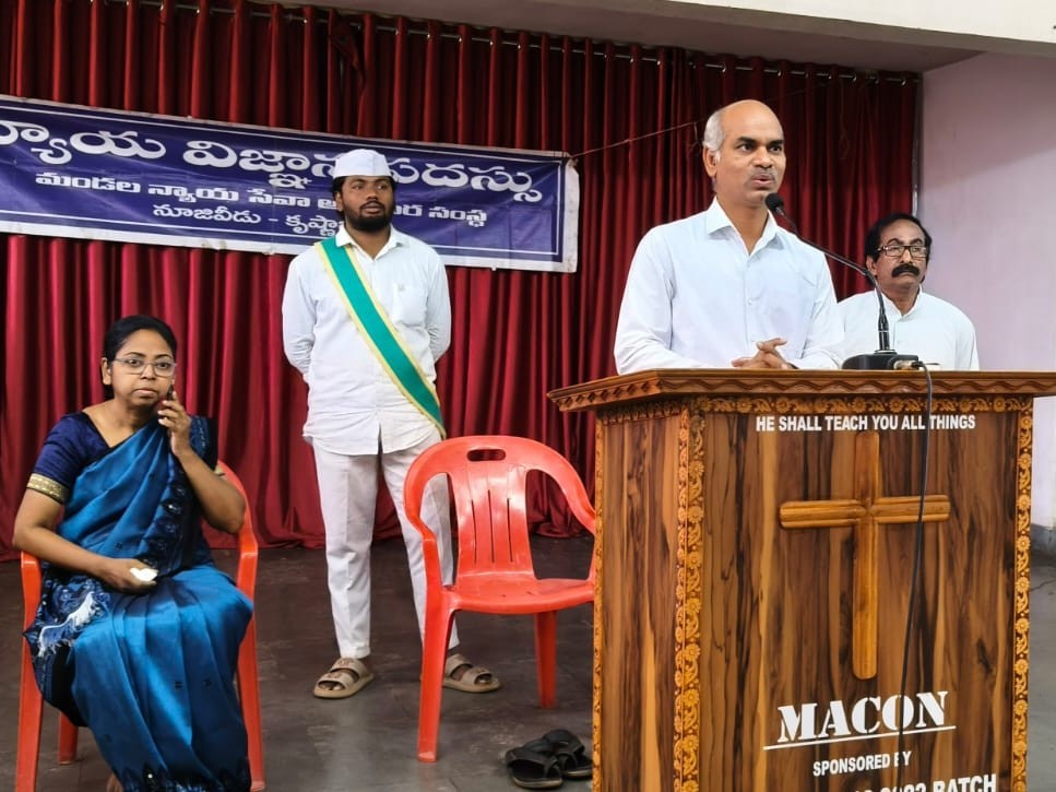 ELR: నూజివీడు పట్టణంలో శుక్రవారం మెటాస్ విద్యాసంస్థలో న్యాయ దినోత్సవం నిర్వహించారు. సీనియర్ సివిల్ జడ్జ్ షేక్ పెద కాసిం మాట్లాడుతూ.. విద్యార్థి దశ నుంచే చట్టాలపై అవగాహన కలిగి ఉండాలన్నారు. విద్యాహక్కు చట్టం, బాల్యవివాహాల నిరోధక చట్టం, మోటార్ వెహికల్ చట్టాలపై అవగాహన పెంపొందాలన్నారు. ఇందులో సీనియర్ న్యాయవాది ఎస్ కే డి ప్రసాద్ పాల్గొన్నారు.