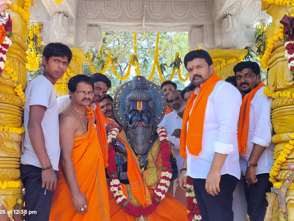 KRNL: ఎమ్మిగనూరు నియోజకవర్గంలోని మసీదుపురం గ్రామంలో జరిగిన శ్రీ వాల్మీకి మహర్షి విగ్రహ ప్రతిష్ట కార్యక్రమంలో మంత్రాలయం సొసైటీ ఛైర్మన్ ఎన్. రామకృష్ణ రెడ్డి పాల్గొన్నారు. విగ్రహానికి పూలమాల వేసి ప్రత్యేక పూజలు ఇవాళ నిర్వహించారు. వాల్మీకి మహర్షి బోధనలు యువత ఆచరిస్తే సమాజం అభివృద్ధి చెందుతుందని అన్నారు. ఈ కార్యక్రమంలో నాయకులు, గ్రామ పెద్దలు, భక్తులు పాల్గొన్నారు.