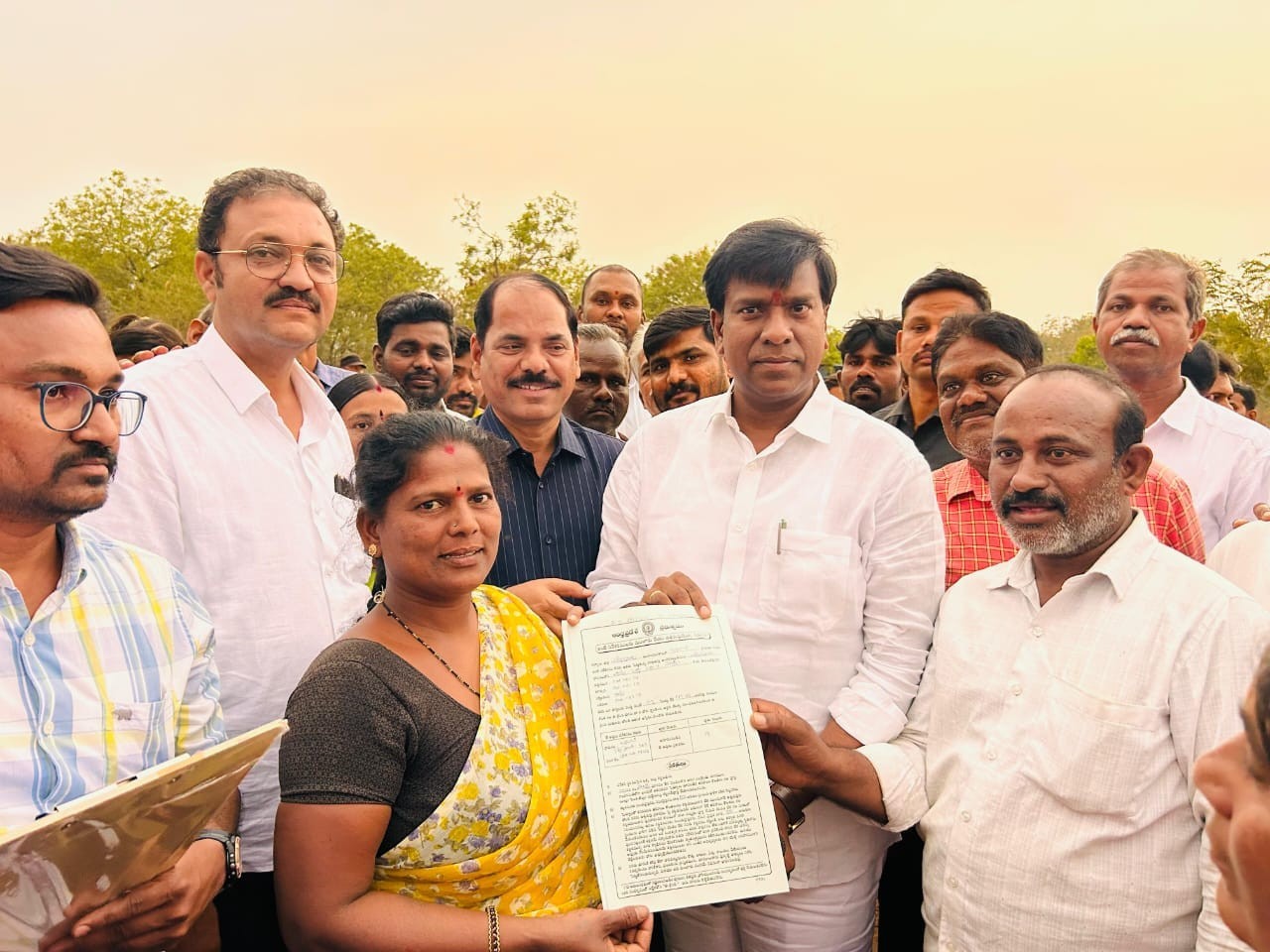 KRNL: ఎమ్మిగనూరులో MLA జయనాగేశ్వర రెడ్డి 64 కుటుంబాలకు నిన్న పట్టాలు పంపిణీ చేశారు. ప్రభుత్వ ఏరియా ఆసుపత్రి ప్రహరీ పక్కన నివసిస్తున్న కుటుంబాలు కోర్టు ఆదేశాల మేరకు స్థలాన్ని ఖాళీ చేయాల్సిన పరిస్థితి ఏర్పడింది. దీంతో వారు నిరాశ్రయులుగా మారే పరిస్థితి నెలకొనగా MLA ప్రభుత్వం దృష్టికి తీసుకెళ్లి ప్రతీ కుటుంబానికి 3 సెంట్ల చొప్పున పట్టాలు మంజూరు చేయించారు.