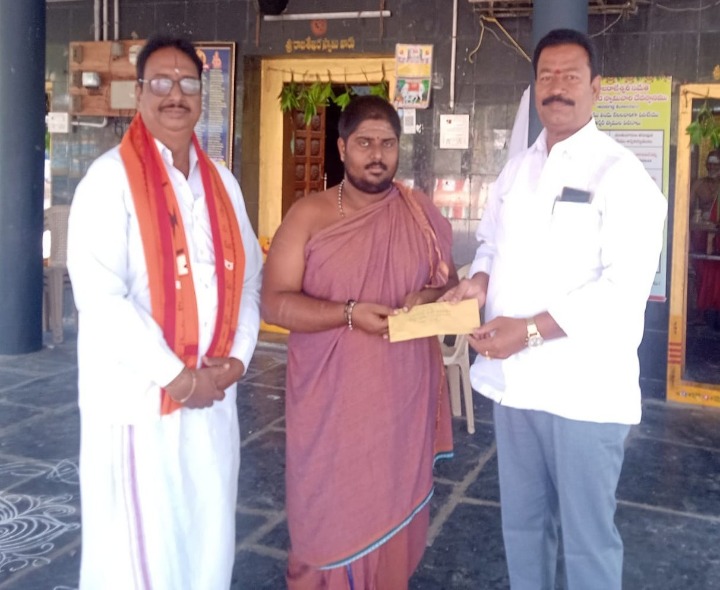 కృష్ణా: ఉగాది సందర్భంగా రాష్ట్ర ప్రభుత్వం దేవదాయ శాఖ అర్చకులకు ప్రత్యేక పారితోషికం మంజూరు చేసింది. గురువారం జిల్లా కలెక్టర్ ఉత్తర్వుల ప్రకారం అవనిగడ్డలోని శ్రీ రాజశేఖరస్వామి వారి దేవస్థాన అర్చకులు జి.పవన్ శాస్త్రికి ఉగాది పారితోషకం రూ.5,116లను దేవస్థానం ఛైర్మన్ ఘంటసాల రాజమోహనరావు అందచేశారు. దేవదాయ శాఖ ఈవో యార్లగడ్డ వాసు, సిబ్బంది పాల్గొన్నారు.