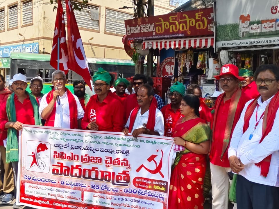 W.G: డ్రగ్స్ సేవించి పట్టుబడ్డ ఏలూరు ఎంపీ పుట్టా మహేష్ను పదవి నుంచి బర్తరఫ్ చేయాలని, డ్రగ్స్లో అధికార టీడీపీ నేతలే పట్టుబడటం ప్రజలకు ముఖ్యమంత్రి సంజాయిషీ చెప్పాలని సీపీఎం రాష్ట్ర కార్యదర్శి వర్గ సభ్యులు బి.బలరాం డిమాండ్ చేశారు. సీపీఎం చేపట్టిన జిల్లా ప్రజా చైతన్య పాదయాత్ర గురువారం 22వ రోజు పాలకోడేరు మండలంలో మోగల్లు గ్రామంలో ఘనంగా ప్రారంభమైంది.