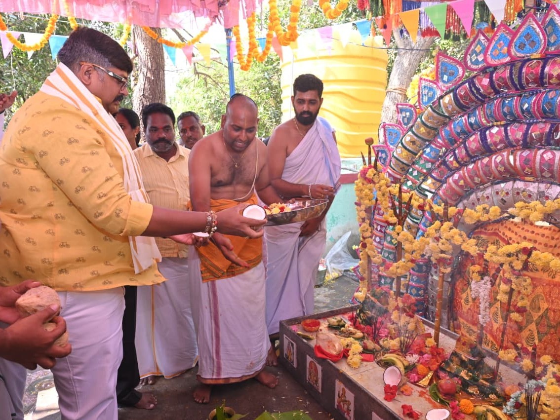 CTR: చిత్తూరు రూరల్ మండలం తుమ్మింద పాలెం గ్రామంలో జరుగుతున్న శ్రీ ధనకొండ గంగమ్మ ఉత్సవాల్లో ఎమ్మెల్యే గురజాల జగన్ మోహన్ పాల్గొన్నారు. ఆదివారం ఉదయం ఆలయానికి విచ్చేసిన ఎమ్మెల్యేకు స్థానిక కూటమి నాయకులు, ఉత్సవ నిర్వాహకులు ఘనంగా స్వాగతం పలికారు. ఈ సందర్భంగా ఎమ్మెల్యే, నాయకులతో కలిసి అమ్మవారిని దర్శించుకొని పూజలు నిర్వహించారు.