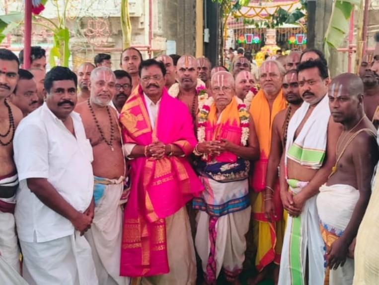 TPT: నాగలాపురంలోని శ్రీ వేదవల్లి సమేత వేదనారాయణ స్వామివారిని ఎమ్మెల్యే కోనేటి ఆదిమూలం ఆదివారం దర్శించుకుని ప్రత్యేక పూజలు నిర్వహించారు. ఆలయంలో నిర్వహించిన మహా కుంభాభిషేక వేడుకల్లో ఆయన పాల్గొన్నారు. ఈ సందర్భంగా ఆలయ అర్చకులు ఎమ్మెల్యేకు కుంభాభిషేక మంత్రజలంతో ఆశీర్వదించి తీర్థప్రసాదాలు అందజేశారు.
