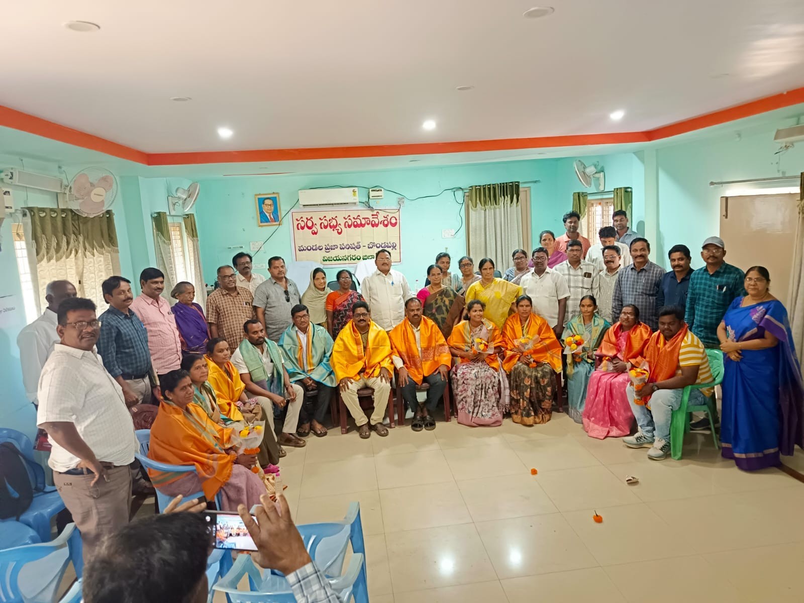 VZM: బొండపల్లి మండల పరిషత్ సమావేశ మందిరంలో ఆదివారం సర్పంచ్లను ఘనంగా సన్మానించారు. సర్పంచుల పదవీకాలం మార్చి నెలలో పూర్తికానున్న నేపథ్యంలో ఈ కార్యక్రమం జరిగింది. సర్పంచ్లకు బొండపల్లి ఎంపీపీ చల్ల చల్లంనాయుడు, పలువురు అధికారులు సర్పంచులకు సాలువల కప్పి పుష్పగుచ్చాలు అందజేసి సత్కరించారు.