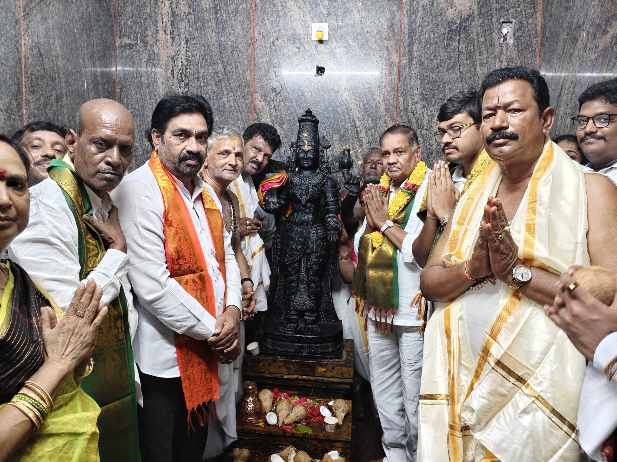 కృష్ణా: అవనిగడ్డ గుర్రపు చెరువు వద్ద నూతనంగా నిర్మించిన శ్రీ వాసవి కన్యకా పరమేశ్వరి ఆలయ ప్రతిష్ట మహోత్సవం ఘనంగా జరిగింది. గర్భాలయంలో అమ్మవారు, ఆలయం ఎదుట ధ్వజస్తంభ ప్రతిష్ట వేద పండితులచే జరిపించారు. ఎమ్మెల్యే మండలి బుద్ధప్రసాద్, నియోజకవర్గ యువ నాయకులు మండలి వెంకట్రామ్ విచ్చేసి అమ్మవారి ప్రతిష్టా మహోత్సవంలో భాగస్వాములయ్యారు.