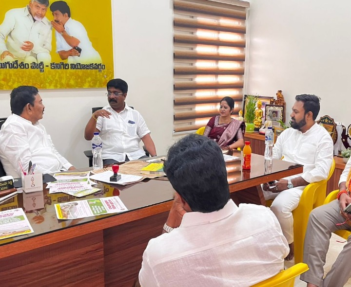 ప్రకాశం: సీఎం చంద్రబాబు దోర్నాల మండలంలో వెలుగొండ ప్రాజెక్టు ఫీడర్ కాలువ పనుల శంఖస్థాపన, మార్కాపురం బహిరంగ సభ పర్యటన సందర్భంగా కనిగిరి టీడీపీ కార్యాలయంలో ప్రముఖ నేతలు మర్యాదపూర్వకంగా సమావేశమయ్యారు. కనిగిరి ఎమ్మెల్యే ముక్కు ఉగ్ర నరసింహారెడ్డిని మండల పరిశీలకులు, మాజీ ఎమ్మెల్యే మేకపాటి చంద్రశేఖర్ రెడ్డి, ఇతర నాయకులు మర్యాదపూర్వకంగా కలిశారు.