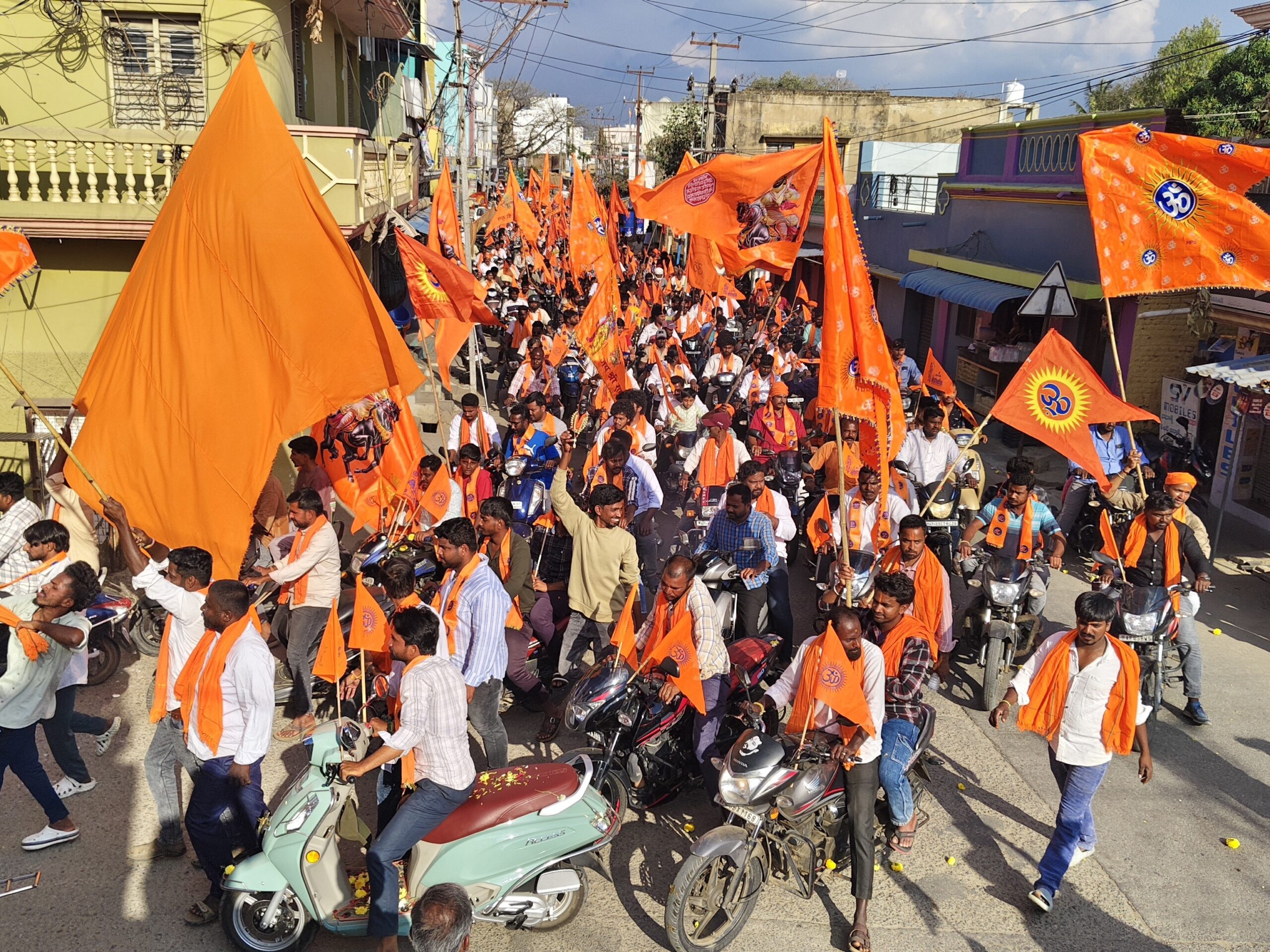 CTR: ఛత్రపతి శివాజీ మహారాజ్ జయంతి వేడుకలలో భాగంగా ఆదివారం హిందూ సంఘాలవారు పుంగనూరులో బైక్ ర్యాలీ నిర్వహించారు. స్థానిక అన్న క్యాంటీన్ నుంచి ఎన్టీఆర్ కూడలి, ఇందిరా సర్కిల్, MBTరోడ్డు గుండా పట్టణ పురవీధుల్లో ర్యాలీ నిర్వహించారు. చత్రపతి శివాజీ మహారాజ్కు జై అంటూ చేపట్టిన నినాదాలు పట్టణంలో మారుమోగాయి. ఎలాంటి ఘటనలు జరగకుండా పోలీసులు బందోబస్తు చేపట్టారు.