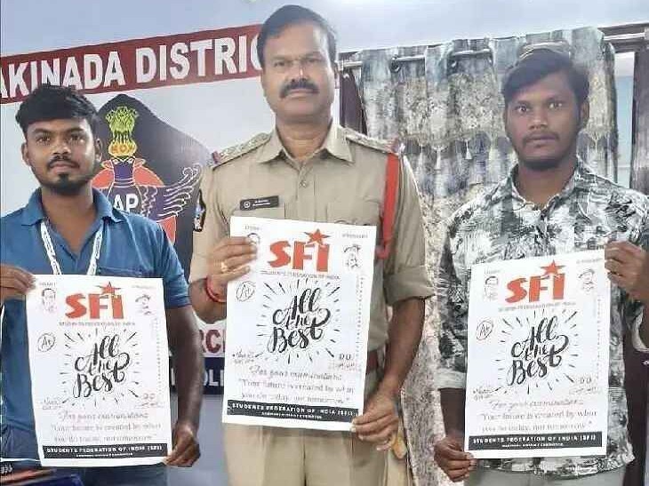 KKD: పిఠాపురంలో SFI ఆధ్వర్యంలో రూపొందించిన ‘ఆల్ ది బెస్ట్’ పోస్టర్ ఆవిష్కరణ కార్యక్రమం నిర్వహించారు. ఈ పోస్టర్ను పిఠాపురం CI శ్రీనివాస్, SFI లోవరాజు, సిద్దు చేతుల మీదుగా ఆవిష్కరించారు. రేపు ఇంటర్మీడియట్ పరీక్షలు రాస్తున్న విద్యార్థులకు ‘ALL The Best’ చెప్తూ ధైర్యంగా పరీక్షలు రాసి తల్లిదండ్రులకు, విద్యా సంస్థలకు మంచి పేరు తీసుకురావాలని సూచించారు.