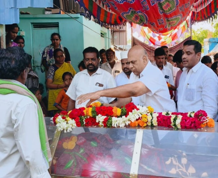 KRNL: ఎమ్మిగనూరు పట్టణం 30వ వార్డులో 21 ఏళ్ల యువకుడు గుండెపోటుతో శనివారం మృతి చెందాడు. విషయం తెలుసుకున్న బుట్టా ఫౌండేషన్ అధినేత బుట్టా శివ నీలకంఠ, వైసీపీ వార్డు ఇన్ఛార్జ్ కోరిశెట్టి విశ్వనాధ్, తదితర నాయకులు మృతుడి ఇంటికి వెళ్లి నివాళులు అర్పించారు. కుటుంబానికి సానుభూతి తెలుపుతూ.. ధైర్యంగా ఉండాలని చెప్పారు. ఈ కార్యక్రమంలో పలువురు స్థానిక నాయకులు ఉన్నారు.