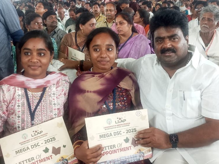 SKLM: డీఎస్సీ పరీక్షలో అర్హత సాధించిన ఆమదాలవలస నియోజకవర్గానికి చెందిన పలువురి అభ్యర్థులకు గురువారం రాత్రి MLA రవికుమార్ నియామక పత్రాలు విజయవాడలో అందజేశారు. ఈ మేరకు వారందరినీ ఎమ్మెల్యే అభినందనలు తెలిపారు. యువతకు ఉద్యోగావకాశాలు కల్పించడంలో ప్రభుత్వం కృషి చేస్తోందన్నారు. నియామక పత్రాలు అందుకున్న వారు ప్రభుత్వం, ఎమ్మెల్యేకు కృతజ్ఞతలు తెలిపారు.