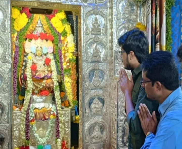 ప్రకాశం: జిల్లా గిద్దలూరులోని శ్రీ వాసవి కన్యకా పరమేశ్వరి అమ్మవారి ఆలయంలో శరన్నవరాత్రులలో భాగంగా గురువారం అమ్మవారు గాయత్రి దేవి రూపంలో భక్తులకు దర్శనమిచ్చారు. మున్సిపల్ కమిషనర్ రమణబాబు తన కుమారుడితో కలిసి అమ్మవారిని దర్శించుకుని, అర్చకులచే తీర్థప్రసాదాలు స్వీకరించారు. అనంతరం ఆలయ కమిటీ సభ్యులు కమిషనర్ను సన్మానించారు.
