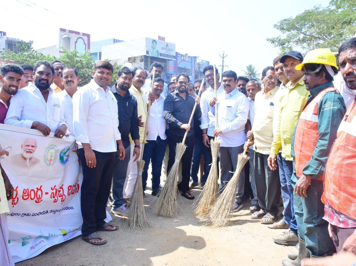 SKLM: రణస్థలం మండల ప్రజా పరిషత్ కార్యాలయంలో స్వచ్ఛ ఆంధ్రా – స్వర్ణ ఆంధ్రా కార్యక్రమాన్ని అధికారులు నిర్వహించారు. ఈ కార్యక్రమానికి ముఖ్యఅతిథిగా స్థానిక ఎమ్మెల్యే ఈశ్వరరావు శనివారం పాల్గొన్నారు. ఈ సందర్భంగా ఎమ్మెల్యే చీపురు పట్టి మండల పరిషత్ కార్యాలయ ప్రాంతాల్లో శుభ్రం చేశారు. పరిసరాలు పరిశుభ్రంగా ఉంచుకోవాలని పిలుపునిచ్చారు.
