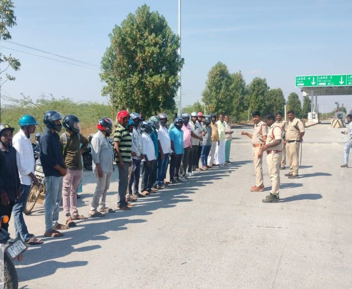 సత్యసాయి: లేపాక్షి పోలీస్ స్టేషన్ పరిధిలోని చౌవలసముద్రం టోల్ ప్లాజా వద్ద పోలీసులు శనివారం ప్రత్యేక వాహన తనిఖీలు చేపట్టారు. హిందూపురం రూరల్ సీఐ జనార్ధన్, ఎస్సై నరేంద్ర వాహనదారులకు రోడ్డు భద్రతపై అవగాహన కల్పించారు. ద్విచక్ర వాహనదారులు తప్పనిసరిగా హెల్మెట్ ధరించాలని సూచిస్తూ, పలువురికి హెల్మెట్లు పంపిణీ చేశారు.